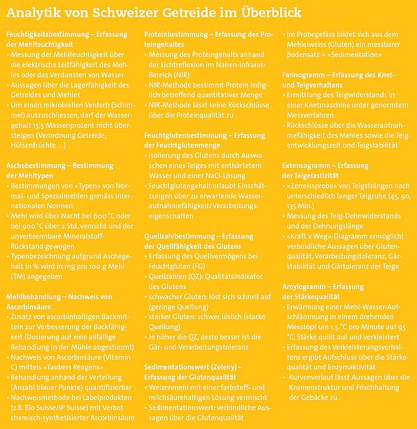 Das Qualitätsbewusstsein der Getreidebranche und die damit verbundene Analytik reicht in Zeiten der «Anbauschlacht» zurück und bildet noch heute ein wichtiges Element für die Versorgungssicherung mit qualitativ hoch stehendem Inland getreide. Dies zumal an gesichts der klimatischgeographischen Voraussetzungen der Schweiz, die dem Getreidebau nicht «von Natur aus» förderlich sind.