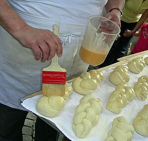 Eine angenehme Begleiterscheinung oder allenfalls sogar ein prioritäres Motiv für die Verwendung von Ersatzprodukten, sind die Rohstoffkosten. Eier sind teurer als die meisten pflanzlichen Ersatzprodukte. Bei Kuchen haben sie den höchsten Anteil an den Zutatenkosten. Bäckerei-Halbfabrikate-Spezialist Puratos offeriert für eine 30 bis 50-prozentige Reduzierung des Ei-Anteils ein Produkt namens Acti-Ovo aus Enzymen und Eiweiss, das die technologischen Funktionen von Eiweiss und Eigelb bei der Kuchenherstellung, wie Farbgebung, Volumen, Textur und Stabilität ausübt. Ein Beispiel eines vegetabilen Komplett- Ersatzes für den Eistrich als Glanzmittel bei Backwaren ist Sunset Glaze Clean Label, ebenfalls von Puratos. Es besteht aus Erbsen- und Kartoffelproteinen, Sonnenblumenöl, Dextrose, Maltodextrin und Wachsmaisstärke. Der glanzstiftende Stoff ist wie beim Eigelb das Fett, während die andern Stoffe den Verdickungs- und Gelierungseffekt ergeben. «Die Nachfrage nach Sunset Glaze Clean Label ist gross und legt stark zu», sagt Julien Saint Paul, Leiter Forschung und Entwicklung von Puratos Schweiz. «Vorteile sind die Abwesenheit von Allergenen und die noch bessere und konstantere Brillanz im Vergleich zum Ei.» Zudem bestehen technologische Vorteile: Sunset Glaze Clean Label ist sprühfreundlicher, tiefkühlstabil, klebt nicht, ist überall anwendbar und hygienisch nicht heikel.» Bäckereien verwenden das Produkt nicht nur, weil es praktischer, sondern auch weil es günstiger ist als Eistrich.