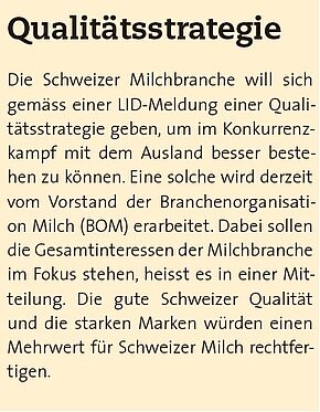 Trotz fortschreitender Konzentration der Branche fällt auf: Einige kleinere Traditionsunternehmen haben sich gehalten und sind sogar gewachsen, viele sind neu entstanden. Der Erfolg basiert meistens auf einer klaren Positionierung, sei es auf Bio-, Regiooder weitere Labelproduktionen – immer in Verbindung mit einer klaren Qualitätsstrategie. Die viel zitierten Skaleneffekte wurden dabei nur denjenigen Betrieben zum Verhängnis, bei denen die Produktionskosten aus dem Lot gerieten. Oft waren dies klassische, mittelgrosse Betriebe, während sich Kleinbetriebe flexibel und anpassbar zeigten.