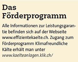 In Lebensmittelindustrie und -handel sind Kälteanlagen, die mit einem veralteten, klimaschädlichen Kältemittel arbeiten, immer noch weit verbreitet. Denn obwohl die Alternativen heute vorhanden sind, sind sie oft teurer. Entsprechend werden bestehende Anlagen nur zögerlich ersetzt, solange es nicht unbedingt nötig ist. Finanzielle Anreize können daher einen Beitrag leisten, dass klimafreundliche Anlagen rascher Verbreitung finden. Hier setzt die Stiftung Klimaschutz und CO2-Kompensation KliK mit dem Programm «Klimafreundliche Kälte» an. Das Programm gibt es seit 2015 und ist vom Bundesamt für Umwelt BAFU anerkannt. Es fördert den vorzeitigen Ersatz von Anlagen mit einem klimaschädlichen Kältemittel durch Anlagen mit modernen, klimafreundlichen Kältemitteln.