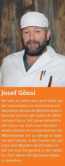 Josef Gössi: Mein Rezept heisst Ankenziger, Fondue-Mischung, Glace und Joghurt. Seit zwölf Jahren stellen wir Glaces her, die bezüglich Geschmacksrichtungen und Qualität einzigartig sind und sich sehr gut verkaufen. Unter anderem führen wir ein Zigermolke-Sorbet mit Orangengeschmack. Ein solches Glace gibt es sonst nirgends. Seit diesem Jahr produzieren wir vor Ort auch eigene Joghurts, damit wir uns zusätzlich profilieren können. Bei beiden Produkten bildet die Basis Milch, bei der es sich ausschliesslich um Glarner Bergmilch handelt. Zusätzlich sind wir zum Käseveredler geworden, indem wir während der Wintermonate eigene Fondue-Mischungen herstellen.
