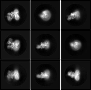Die Struktur der OST aufzuklären, war nicht einfach: Zuerst veränderte Jilliane Eyring, dritte Erstautorin der Publikation, die Hefezellen derart, dass das Enzym gezielt gereinigt werden konnte. Rebekka Wild musste das Enzym, das in der Zelle in eine Membran eingebettet ist, dann aus grossen Mengen dieser Hefezellen extrahieren und danach aufwendig reinigen. «Neun Liter Hefe ergaben rund 0,2 Milligramm Enzym», sagt sie. Danach wurden die OST-Moleküle als einzelne separate Partikel schockgefroren und mithilfe eines hochauflösenden Kryo-Elektronenmikroskops abgebildet. Dabei entstanden Tausende Bilder, die den Enzymkomplex aus allen möglichen Blickwinkeln zeigen. Daraus errechnete Julia Kowal, die zweite Erstautorin der «Science»-Publikation, die dreidimensionale Struktur der OST. Dafür rechnete der Computer sechs Wochen lang. Das Ergebnis: eine sogenannte Elektronenmikroskopiekarte, auf der das Enzym als eine Art Elektronenwolke dargestellt wird.