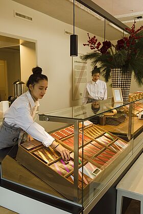 Dieter Meier:  In der Produktion sechs Personen. Dabei handelt es sich um an der  Zürcher Hochschule für Angewandte Wissenschaften ausgebildete  Spezialisten. Im Laden arbeiten eine Confiseurin und vier  Verkäuferinnen.