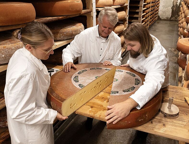 Der Begriff «Affineur» ist kein anerkannter Beruf, und es existiert keine einheitliche Definition. In meiner persönlichen Interpretation bedeutet Affineur, dass die gesamte Herstellungskette von der Milch bis zum Kühlschrank optimiert wird, um einen vollendeten Käsegenuss zu ermöglichen. Dank unserer langjährigen Erfahrung über sechs Generationen hinweg sind uns die Geheimnisse der Schweizer Milch- und Käseproduktion bestens vertraut.