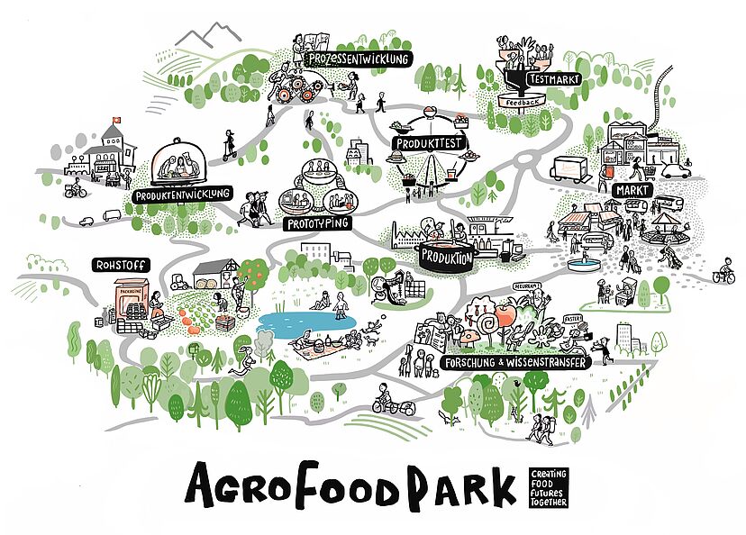 Neue und nachhaltige Lebensmittel entstehen nicht im Alleingang – sie benötigen neben einer guten Idee auch Forschung und Entwicklung sowie den Zugang zu moderner Infrastruktur und natürlich einen Markt. Genau hier setzt der Agro Food Park an: Eine Gruppe von Expert*innen begleitet Unternehmen in allen Phasen der Produktentwicklung – von der Vision auf dem Workshop-Board, über die Bewältigung technologischer Herausforderungen und die reibungslose Herstellung bis hin zum Test auf dem Markt.