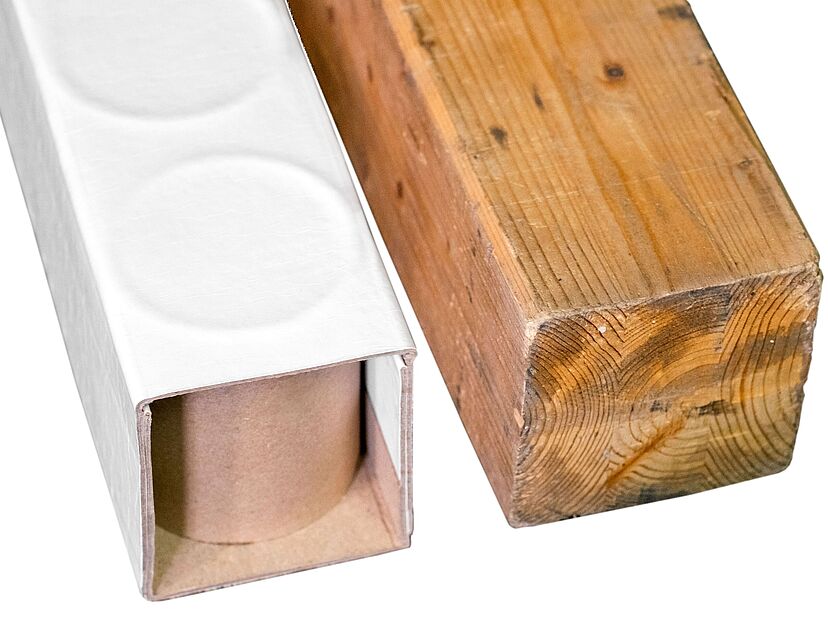 Statt auf die klassische Düsseldorfer Palette aus Holz stellt Rapunzel die Kartons nun auf die 80 Prozent leichteren Füsse von Squair-timber aus Karton. Und das hält: Das Trägersystem besteht aus einem Kartonfaserverbundstoff, der nach dem Carbon- Prinzip gefertigt wird. Das Material ist wetterfest und zu 100 Prozent recycelbar.