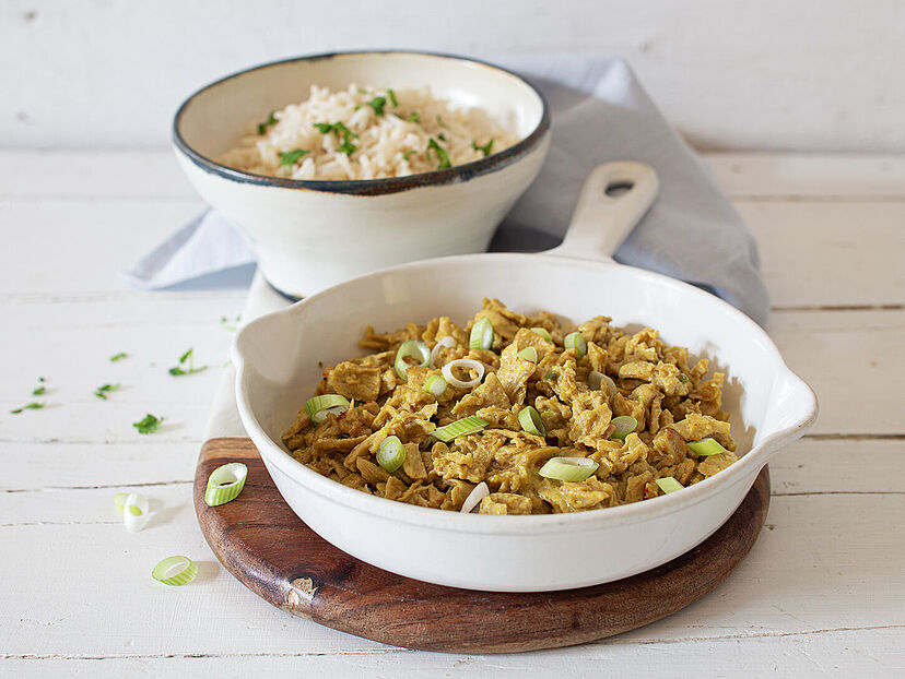 Vitatex Wheat Fava Flakes SVP Pro verfügt über eine hohe Wasseraufnahmefähigkeit (bis zu 1,9-facher Wasseraufnahme) und bleibt auch unter mechanischer Belastung stabil. Es widersteht Scherkräften im Herstellungsprozess und behält seine Faserigkeit auch nach Anbraten, Kochen, Garen im Konvektomaten, Abtauen oder Frittieren. Auch in Pasteurisierungs- und Sterilisierungsprozessen bewahrt es seine Struktur, was es zu einer zuverlässigen Lösung für die industrielle Verarbeitung macht. Das helle Texturat lässt sich bei Bedarf leicht einfärben und nimmt auch Aromen gut auf. Im Vergleich zu Produkten auf Basis von Erbsenprotein weist es geringere Off-Notes auf.