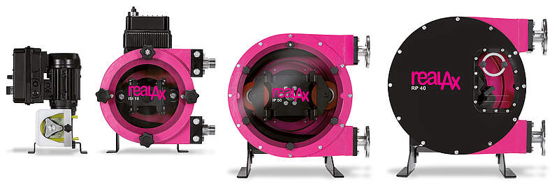 Die Baureihen der Marke realAx decken zuverlässig alle Hochleistungs-Anwendungsfelder ab und erleichtern dabei Wartung und Service. Zusätzlich bieten wir neben den bekannten Schlauchpumpen mit Druckschuh-Technologie jetzt endlich auch Baureihen mit Rollenkompression.