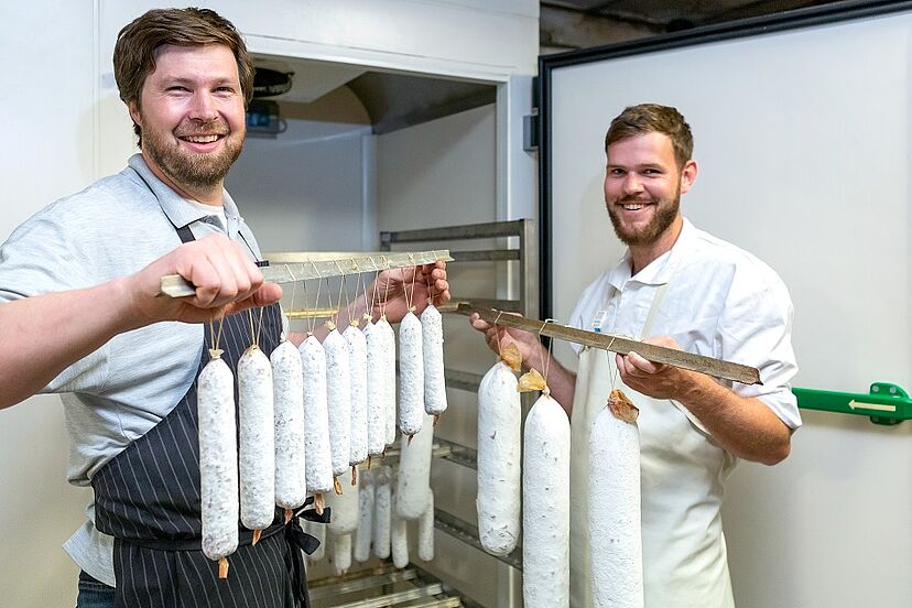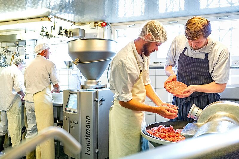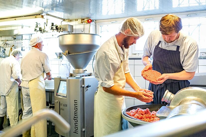 Wir beschaffen möglichst alles aus der Region. Der Zukauf der Tiere erfolgt zum grossen Teil bei Bauern aus der Umgebung. Zudem setzen wir auf Eigenschlachtung. Die gute Kenntnis der Rohstoffe und ihrer Herkunft ermöglicht eine fachgerechte und handwerklich hochstehende Herstellung mit weitgehend natürlichen Zutaten und möglichst ohne Zusatzstoffe.