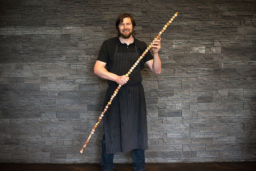Martin Stettler: Das Ziel «60 Wurstsorten» stand am Anfang der Geschäftsgründung im Rahmen einer Kanada-Reise. In Quebec traf ich auf einen lokalen Metzger mit einem derart zahlreichen Sortiment. Die 60er-Marke habe ich jedoch schon vor acht Jahren erreicht. Das Sortiment hat sich bei 62 Sorten eingependelt. Wir bleiben jedoch nicht stehen und entwickeln laufend neue Spezialitäten. Wenn etwas nicht so gut läuft, wird das Produkt durch etwas Neues ersetzt. Für unsere Stammkundschaft wechseln wir jährlich etwa 5 Sorten aus.